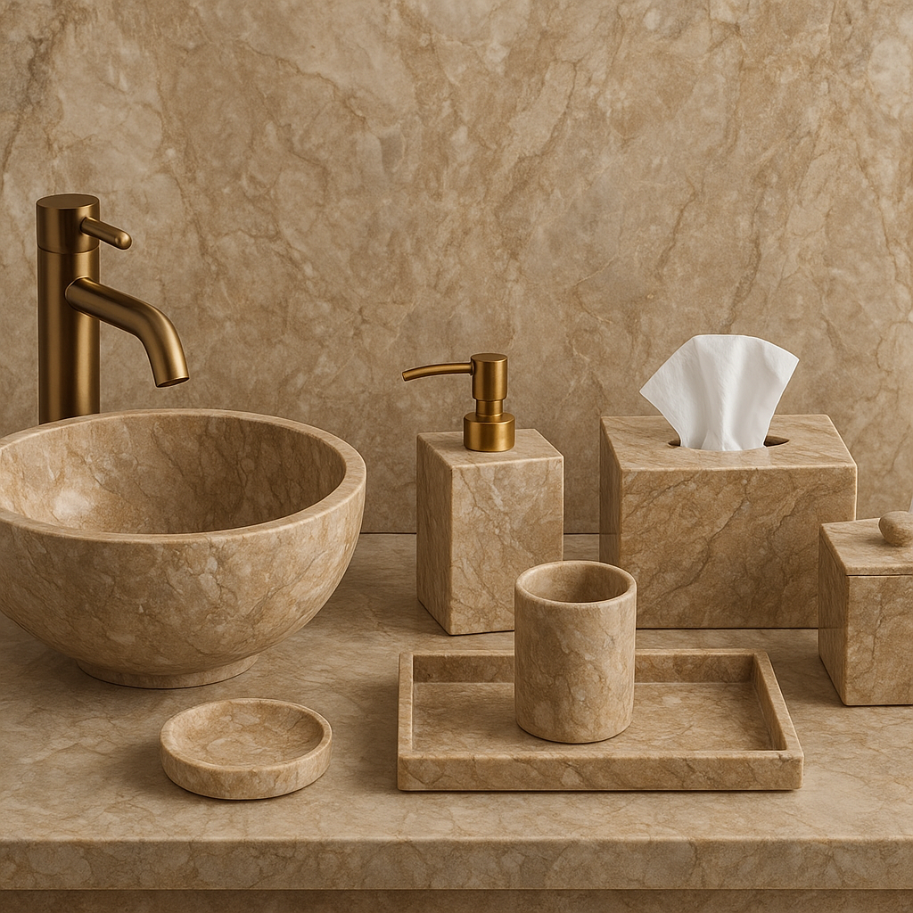 We offer bespoke services for our luxury stone products, including size modifications, specific finishes, and personalized designs for marble, fossil stone, and onyx bathroom fixtures and accessories.